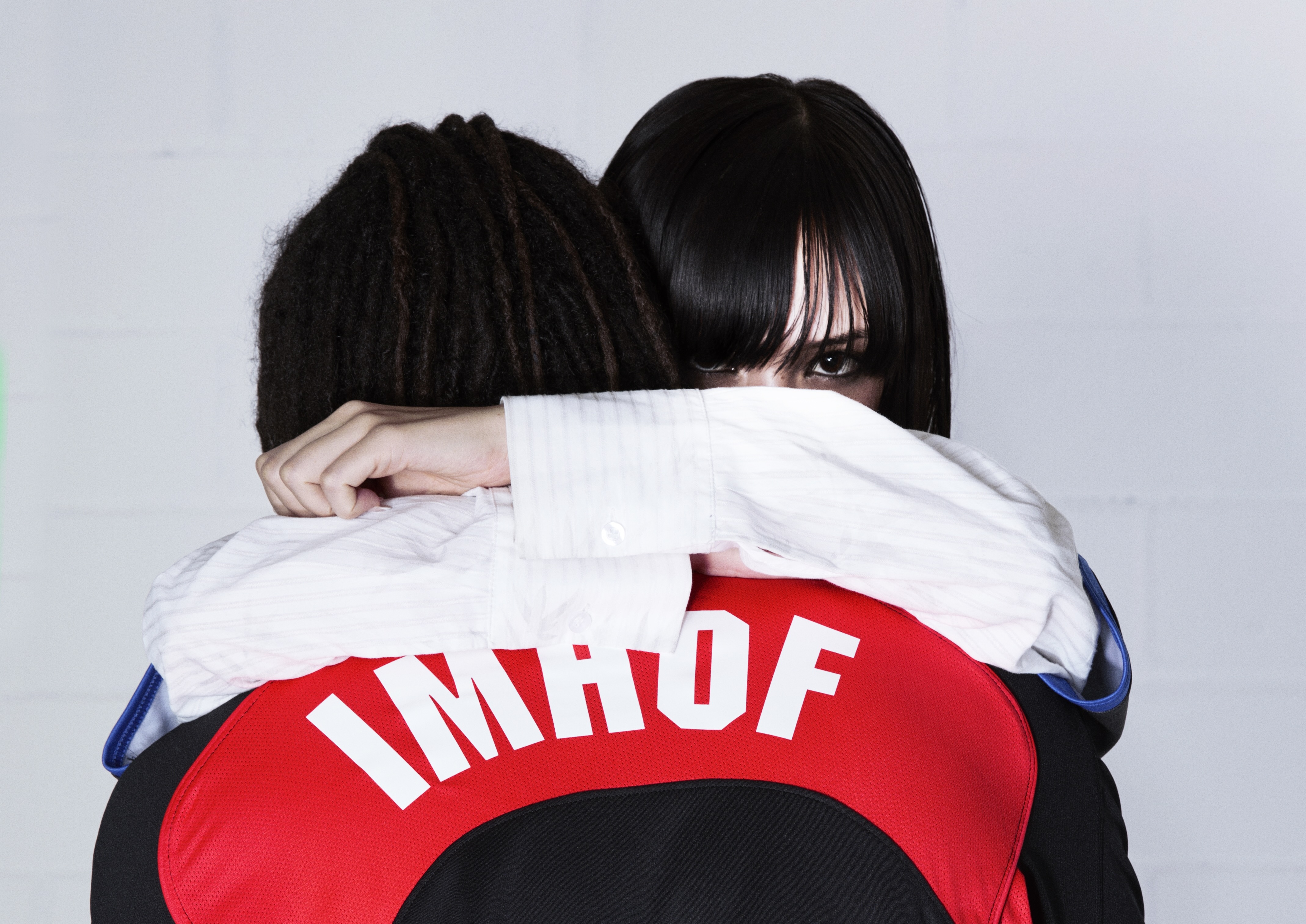 Gemeinsam mit der Modemarke Nike hat Anne Imhof ihre erste Marken-Kollaboration umgesetzt und das "Total 90"-Trikot neu interpretiert. Dabei handelt es sich um ein Mode-Artefakt der 2000er-Jahre, das durch den "Blokecore"-Trend (sprich: Fußballtrikots als Streetwear-Statement) in Popkultur und High-Fashion gerade ein Comeback erlebt. Die Kollektion umfasst zwei Modelle: ein schwarz-blaues T-Shirt für das House of Tigers und ein rotes Longsleeve mit Wolfskopf für das House of Wolves. Auf der Brust prangt das "Doom"-Wappen, auf dem Rücken steht "Imhof 25".