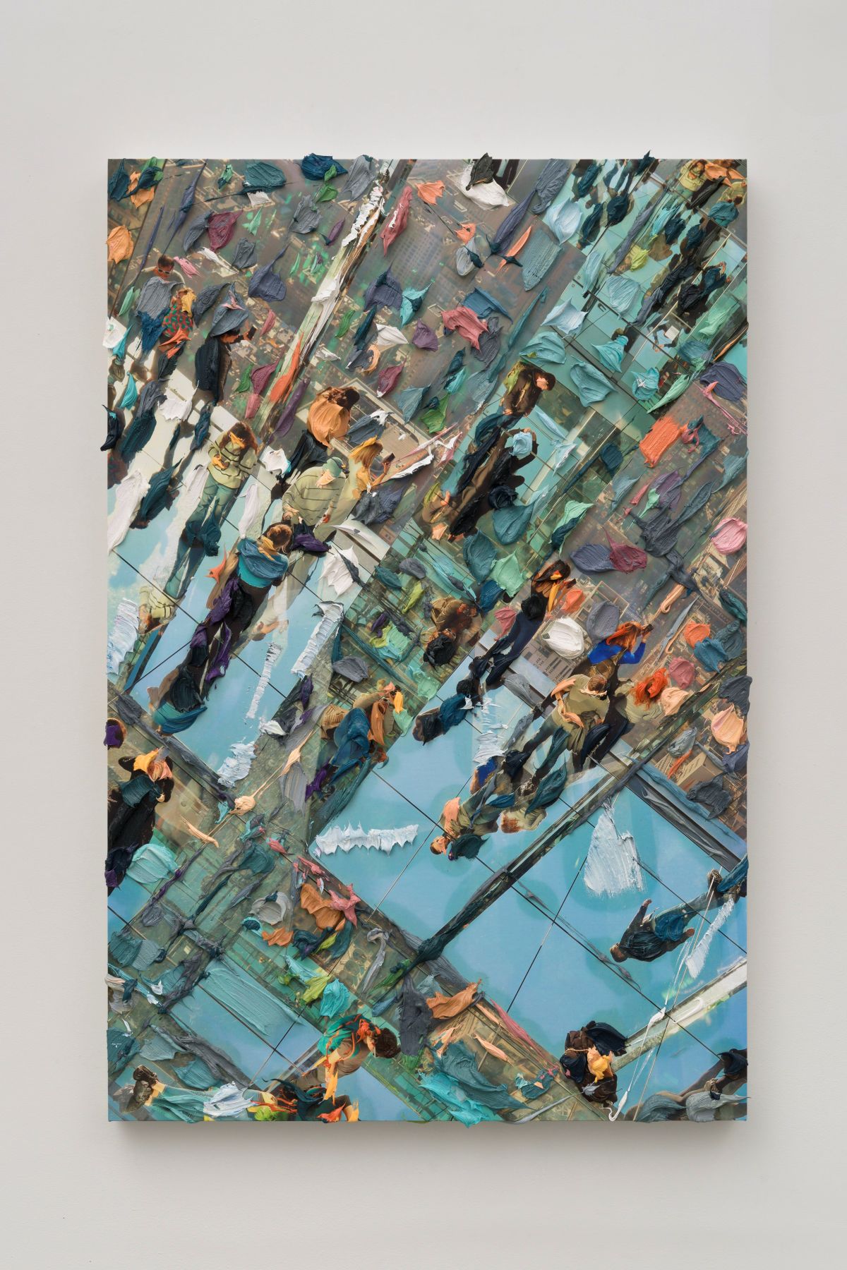 Over time, the sources became more evident: the act of translating a mechanically produced image into art increasingly formed the focus. Now, Schmidt sometimes simply uses large blobs of oil paint to depict the individual elements from the photographs he uses as a starting point, thus halting the transformation of world into art halfway. "This conveys a certain decay," Schmidt says. "These images are brittle. As if they’d fall apart if you gave them a good shake." His most recent series, in contrast, hearken back to an almost sketch-like style. For instance, Schmidt stopped strangers on the street in Vienna in summer 2024, capturing their likenesses with just a few precise strokes.