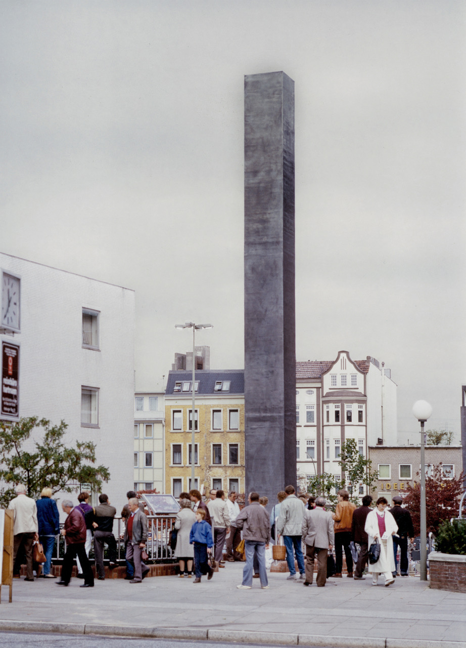 Bis 1993 wurde die Stele sukzessive im Boden versenkt – heute sieht man nur noch die Oberseite als Platte im Boden. Durch ein Fenster in einer Unterführung lässt sich ein Blick auf den unterirdischen Teil werfen. Vor Kurzem wurde das stark verfallene Denkmal restauriert und im Rahmen eines performativen Stadtrundgangs in Anwesenheit der Künstler wieder in öffentliche Bewusstsein der Hamburger Bürger gerückt. Grund genug, um mit ihr über neue Denkmäler, das Potenzial des Abwesenden und eine andere Art der Erinnerung zu sprechen.