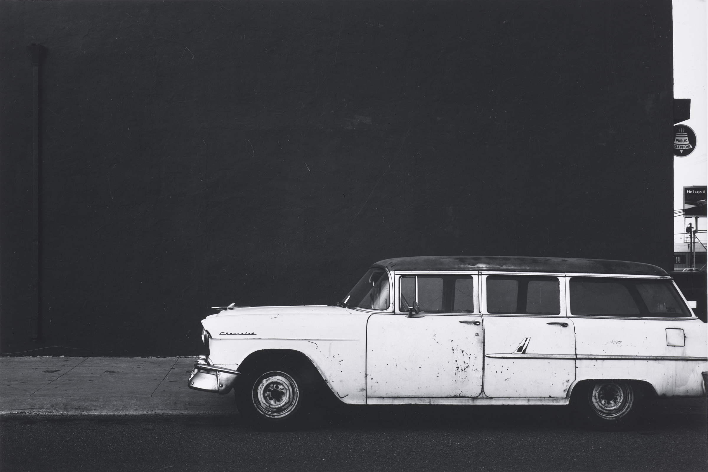 Diese Inspiration kann man auch in der Werkgruppe "The Prototype Works" ablesen, aus der ebenfalls ein Dutzend in der Galerie Thomas Zander gezeigt wird und die als Vorbereitung zu "The New Industrial Parks near Irvine, California" gesehen werden kann. Bereits ab 1967 konzentrierte sich Baltz mit diesen Fotografien auf das scheinbar Banale in den Architekturen am Straßenrand, allerdings bereits hier schon mit einem enormen Gespür für Flächen und Strukturen, minimalistische Kompositionen und formale Strenge: Zugemauerte Fenster und rissiger Verputz, leere Parkplätze und Wellblechreste, schicke Straßenkreuzer vor trostlosen Fassaden.